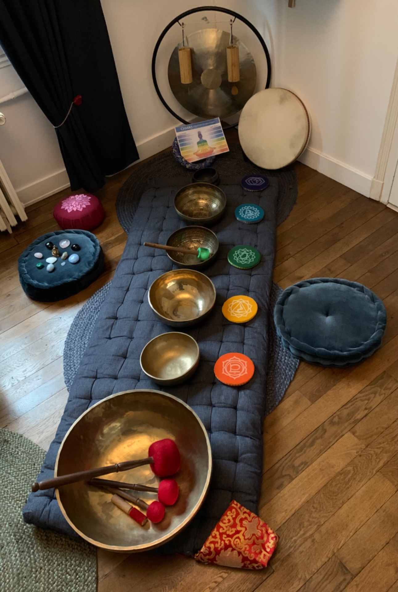 A travers l’écoute de sons de la nature ou de certains instruments ( bols , gong , koshi , cymbales , tambour océan …) le corps et l’esprit s’apaisent et se reconnectent.